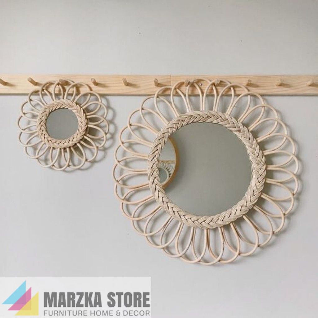 Cermin Dengan Bingkai Anyaman Rotan Cermin Hias Cermin Unik Hiasan Dinding Shopee Indonesia